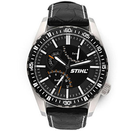 Цельный корпус из нержавеющей стали, диаметр 44 мм, кожаный ремешок, закаленное стекло Crystex, водонепроницаемость до 10 атмосфер, функция Dual Time, индикация даты и индикация времени в 24-часовом формате.
