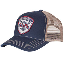 Цвет кепки темно-синий, цвет сетки бежевый, 55 % хлопок, 45 % полиэстер, изогнутый козырек, накладная эмблема Heritage из хлопчатобумажной саржи, с застежкой-липучкой для регулировки размера.