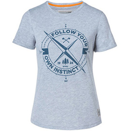 Цвет серый меланж, 48 % полиэстер, 47 % хлопок, 5 % эластан, короткие рукава с отворотами, принт «роза ветров» STIHL на груди.