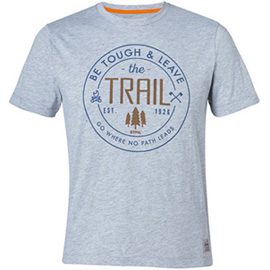 Цвет темно-серый, 50 % хлопок, 50 % полиэстер, на груди двухцветный принт с надписью «BE TOUGH & …»