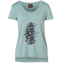 Цвет зеленый, 92 % вискоза, 8 % эластан, глубокий вырез, боковые разрезы, на груди фото-принт с мотивом «шишка».