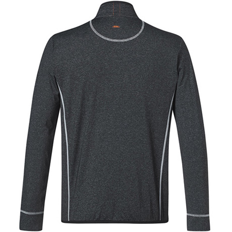 Цвет темно-серый, 46 % полиэстер, 44 % нейлон, 12 % эластан, воздухопроницаемая, быстросохнущая, светоотражающие полосы, принт в виде скрещенных топоров на груди, надпись «STIHL TIMBERSPORTS®» в качестве переднего принта.